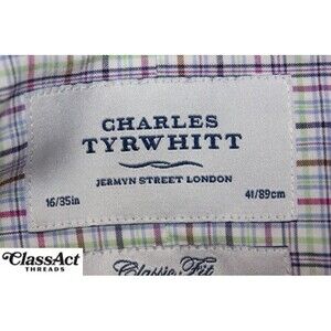 Charles Tyrwhitt Men’s Dress Shirt Classic Fit Blue Green Check 16 - 35