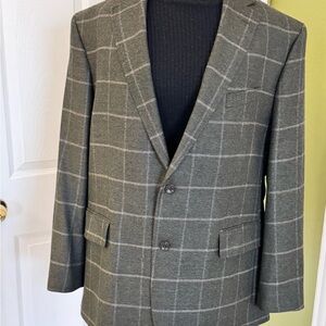 Elevate your style with this sophisticated gray checkered blazer. Perfect for any formal occasion. Fairly used and in great condition! Open to offers