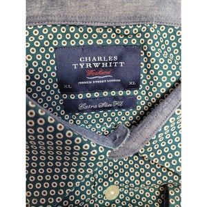 Charles Tyrwhitt Mens XLarge Weekend Extra Slim Button Up Green Eye Dot