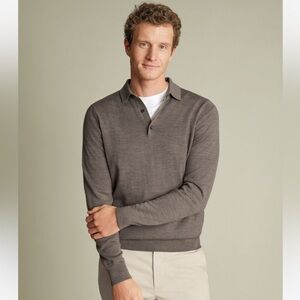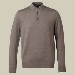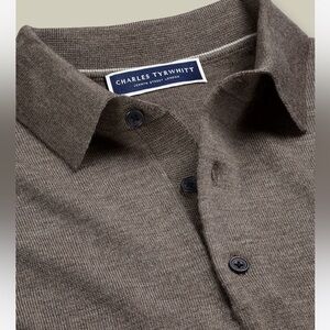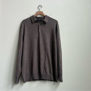 Charles Tyrwhitt Men's XXL Merino Wool Long Sleeve Polo Sweater Mocha Old Money