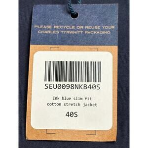 Charles Tyrwhitt NWT Navy Ink Blue Cotton Stretch Blazer Slim 40S