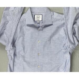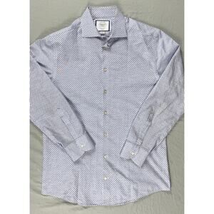 This sharp looking shirt by Charles Tyrwhitt comes in a beautiful blue geometric pattern. It is in excellent condition with super crisp color/fabric and no noted defects of any kind. This one looks amazing. I encourage you to use the photos to inspect it from all angles, and think you'll agree this is a beautiful piece of clothing that will make an excellent addition to your wardrobe!