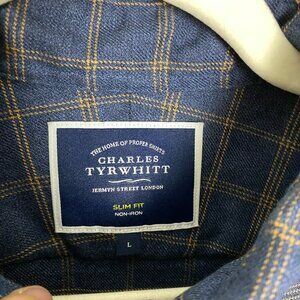Charles Tyrwhitt Plaid Check Button Down Shirt Blue Mens Slim Fit Large Non Iron