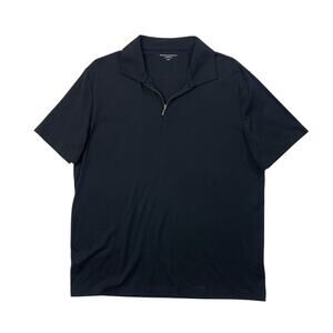 Charles Tyrwhitt Polo Shirt Mens Large Black Cotton Zip Neck Jersey Short Sleeve