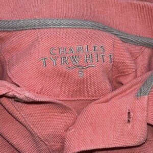 Item is a pre-owned men's pink/peach colored Charles Tyrwhitt polo short sleeve shirt in a size small.
