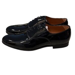 The Charles Tyrwhitt Patent Oxford Shoe in size 10.5 is a stylish and classic men's dress shoe. Made of high-quality leather with a water-resistant patent finish, these lace-up shoes feature a sleek black color and a comfortable leather lining and insole. The Oxford style and British heritage of the brand make them a versatile and timeless addition to any man's wardrobe. Crafted in Portugal, these shoes are designed for both comfort and sophistication in any formal or professional setting.