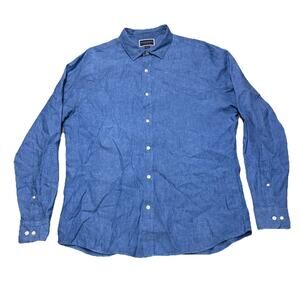 Charles Tyrwhitt Shirt Men XL Linen Slim Fit Button Up L/S Dress Shirt Blue