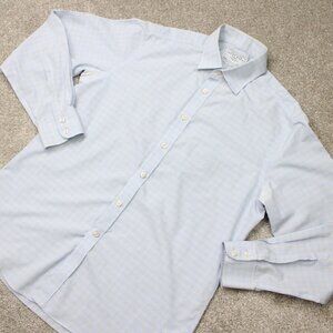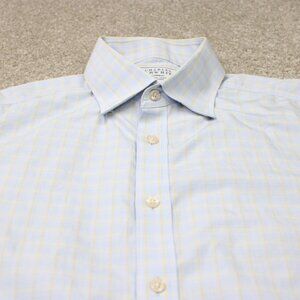 Charles Tyrwhitt Shirt Mens 16 1/2, 35 Blue/Yellow Non-Iron Slim Fit Cotton L/S