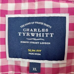 Charles Tyrwhitt Shirt Mens XL Pink Gingham Check Non Iron Slim Fit Preppy Dad