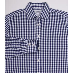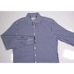 Charles Tyrwhitt Slim Fit Non-Iron Navy Blue Gingham Check Dress Shirt 16-35