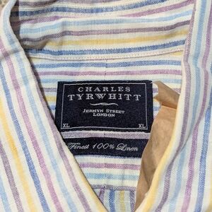 Stylish Charles Tyrwhitt button down shirt with multicolor stripes. Made from 100% linen for comfort and breathability.