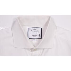Charles Tyrwhitt White Herringbone Dress Shirt Extra Slim Non Iron (43) 17-36