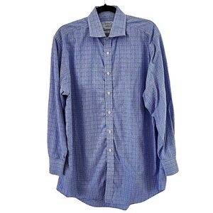 Charles Tyrwhittt London Light Blue Windowpane Check Grid Long Sleeve Shirt 16.5