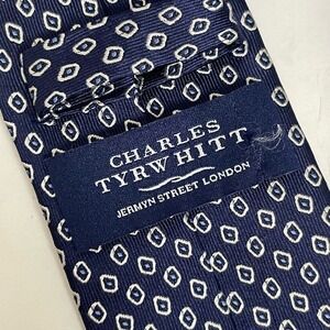 Charles Tywhitt Designer Necktie Silk Blue Silver Geometric Print