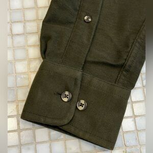 Charles Tywitt Green Buttondown Shirt. 100% cotton. Soft heavy flannel feel. Good used condition. Material has small wear above pocket as shown.