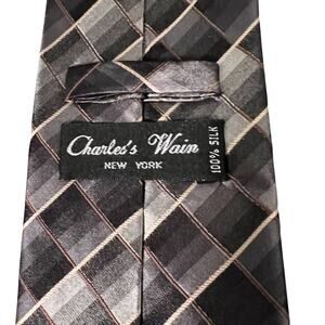 Charles Wain Tie Mens Silk Necktie Brown Gray Geometric Designer 59 inch