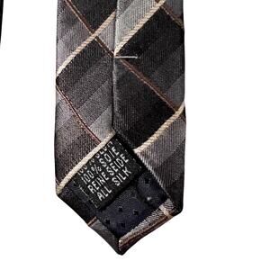 Charles Wain Tie Mens Silk Necktie Brown Gray Geometric Designer 59 inch