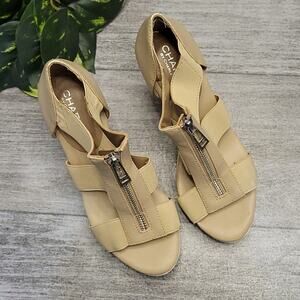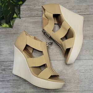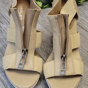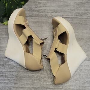 Charles by Charles David Beige White Paul Zipper Front Wedge Sandal Women's 5.5