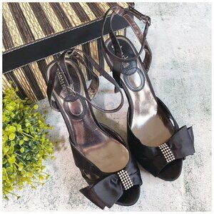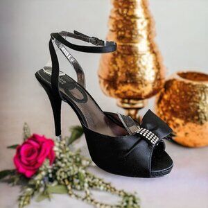 Charles by Charles David Black Satin Formal Heels w Rhinestones Women's Sz 7.5