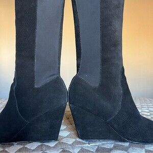 Charles by Charles David Black Suede Wedge Heeled Boots Women’s Size 7