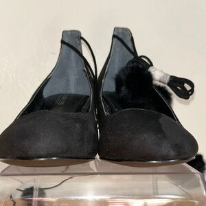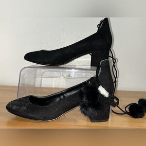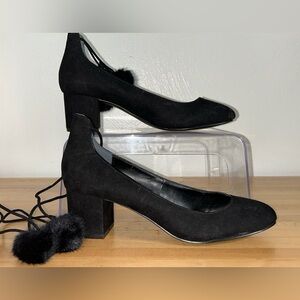 Charles by Charles David Lily 2.5 Inch Faux Suede Block Heel Round Toe Wrap Pom Size 8