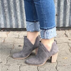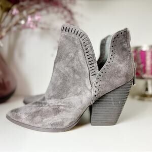 Charles by Charles David "Nicola" Western Bootie in microsuede. Size 6M. Super soft, cute and stylish. Split, perforated topline detail. Stacked riding heel. Pointed toe. Back zip. Italian-made footwear for the modern woman.