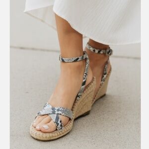 Charles by Charles David Platform Wedge Snake Sandals White Black Size 9.5