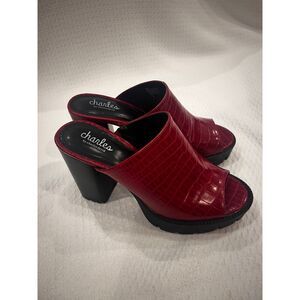 Charles by Charles David Red Croc Block Heel Mules Chunky Tread Heels Size 8