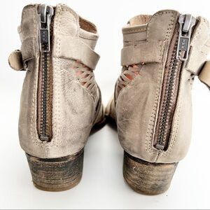 Excellent used condition! These are such cute boots with smooth leather, factory distressing, and accent straps at ankles. Zipper closure at heel. No signs of wear, insoles are clean and soles are not worn. See photos for more details.