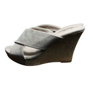 Charles by Charles David Tan Suede Wedge Sandals Size 8.5 Crisscross Cork Heels