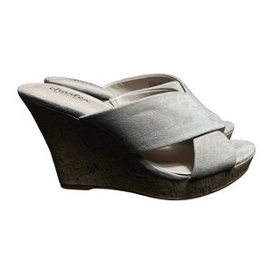 Step into effortless summer elegance with these Charles by Charles David wedge sandals in a warm tan faux suede. Featuring wide crisscross straps and a classic cork wedge heel, these slip-on sandals offer both height and comfort. Lightly cushioned footbed makes them ideal for brunches, vacations, or dressing up your casual looks. Women’s size 8.5 with minimal wear—uppers are clean and ready to wear.