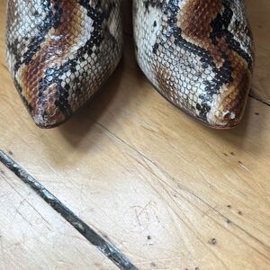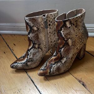 Charles By Charles David Snakeskin Ankle Boot Sz 6M Women Block Heel Pointed Toe. Light wear on toes and soles (pictured), but in great condition overall.