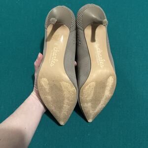 Charles by Charles David Women’s Grey Knit Ankle Booties in Size 9M offer a stylish and modern look with a sleek pointed toe and a comfortable mid-height stiletto heel. These boots feature a soft, stretch-knit fabric that conforms to your foot for a snug yet breathable fit. The perforated detailing adds texture and sophistication, making them a great choice for casual or dressy occasions. The slip-on design with a flexible, sock-like upper ensures easy wear, while the durable sole provides traction and stability. Gently pre-owned with minimal signs of wear on the outsole. Perfect for elevating your wardrobe with a chic and contemporary touch.