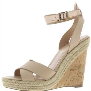 Charles by Charles David new with box platform wedge heels sandals in a beautiful light peach color and cork heels. Man made materials Sz 11