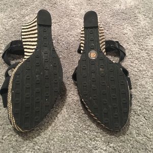 Fun and stylish wedge sandals! Great for both day and night. Some wear inside and on soles but otherwise in good condition.