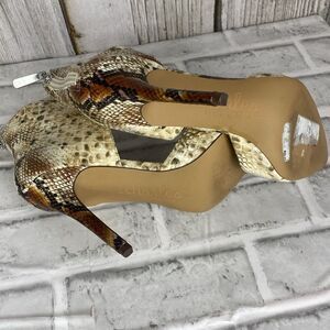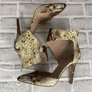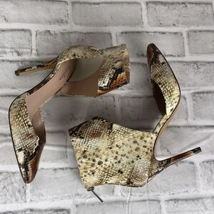 Like new gorgeous leather heels with snakeskin pattern. Back zipper closure. 4" heel height. No flaws. Still has tag on sole. Smoke free home. Bundle and save! Check out my 5 star reviews! Fast and careful shipping!