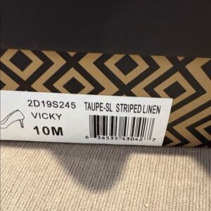 Stylish heels with a cream and white striped pattern. Perfect for any occasion. Add elegance to your outfit.