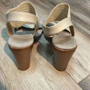 Charleston Shoe Co Women's Beige Elastic Tribeca Block Stacked Heel Size-9/39