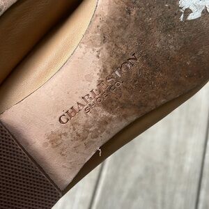 Gently worn Charleston Shoe Company ballet flats in a versatile tan color. Made from soft, flexible leather with a sleek, minimalist design. These flats feature a cushioned black insole for comfort and a rounded toe for a timeless look. Perfect for everyday wear, work, or travel. Light creasing on the toe area but still in great condition with plenty of life left!