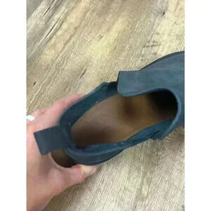 Charleston Shoe Company Federal Ankle Boots Blue Leather Suede Women's 7. Some wear on bottom of soles of shoes as shown in photos; some wear on toe area but could be cleaned with suede cleaner (sold as is). Refer to all photos for condition.