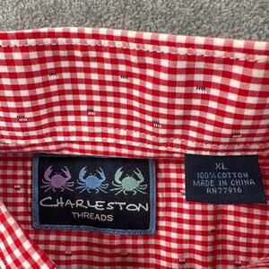 Charleston Threads Red Gingham Button Down Shirt Men's XL Long Sleeve Cotton