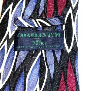 For sale is this Charleston Tie Rack tie, 100% silk. This black/burgundy geometric patterned tie is 58 length, 3-7/8width. Excellent condition.