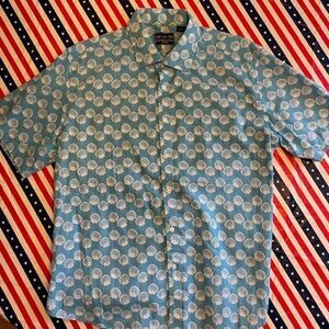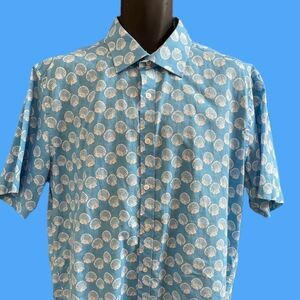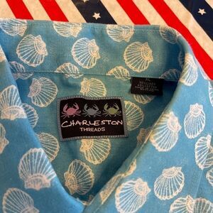Charleston Threads Men’s Blue White Shell Linen Button Down Shirt Size XL