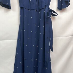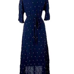 Charli Navy Embroidered high low wrap dress size 4 EUC