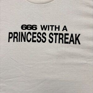 CharliXCX 666 With a Princess Streak T-Shirt Size Extra Large. It roughly measures 22 inches pit to pit 29 inches long. Great shirt for your closet has markings see photos.