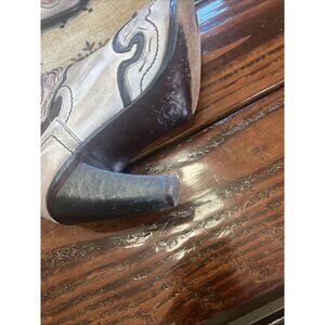 General leather wear. Heel tips may need replacement (cobbler). Price reflects heel replacement if buyer chooses to do so.