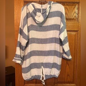 Super cute linen/cotton hooded lightweight jacket. Perfect for summer nights. Has the look of the trendy gauze material. Smoke free home. No rips or tears.