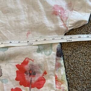 Charlie B Linen Dolman Top. White with Printed Flowers. Size Small