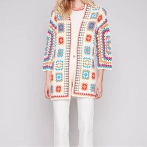 Charlie B Long Color Block Crochet Cardigan Colorful Long Sleeves Size XS/S NEW