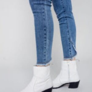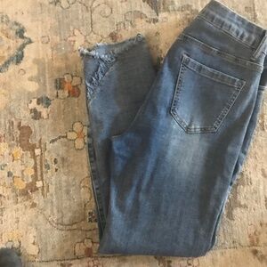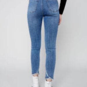 Charlie B Medium Blue Women’s Ankle Jeans with Frayed Tulip Hem-Size 10